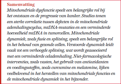 De gemeenschappelijke deler bij verschillende kankertypes blijkt een gewijzigde mitochondriale functie te zijn. Reeds tachtig jaar geleden merkte Warburg op dat kankercellen een beschadigde celademhaling hadden, leidende tot een gereduceerde celademhaling en verhoogde lactaatproductie (aerobe glycolysis of Warburg effect). Sindsdien wordt dit bevestigd in verschillende klinische studies. Het eerste onderdeel van deze hypothesis, waarbij men ervan uitgaat dat bij snelgroeiende tumoren de glycolysis en lactaatproductie sterk verhoogd is, is inmiddels algemeen aanvaard en aangetoond in preklinische studies en in vivo. Het tweede deel van deze hypothesis, waarbij men het mogelijke ontstaan en progressie van kanker toewijst aan mitochondriale dysfuncties, is echter nog steeds niet volledig opgehelderd. Klinische studies tonen een sterke correlatie tussen mitochondriale dysfunctie, zoals defecten in de celademhalingscyclus (oxidatieve fosforylering of OXPHOS), mtDNA (mitochondriaal DNA) mutaties en minder aanwezigheid van mtDNA in humane kankercellen. Ernstige mitochondriale dysfunctie leidt idealiter tot celapoptose. Deze natuurlijke celdood treedt bij tumorcellen echter niet op, waardoor de mitochondriale functies intact blijven, ook al zijn er dysfuncties aanwezig.1
