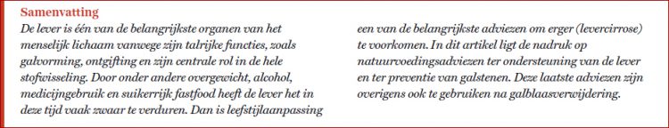 Een overbelaste lever is een veelvoorkomend probleem in onze huidige tijd. Voor lever- en galproblemen die nog omkeerbaar of minder ernstig zijn, bestaan er een aantal relevante natuurvoedingsadviezen. Omdat de lever een groot herstelvermogen heeft, kan met dit soort adviezen al een grote verbetering optreden.